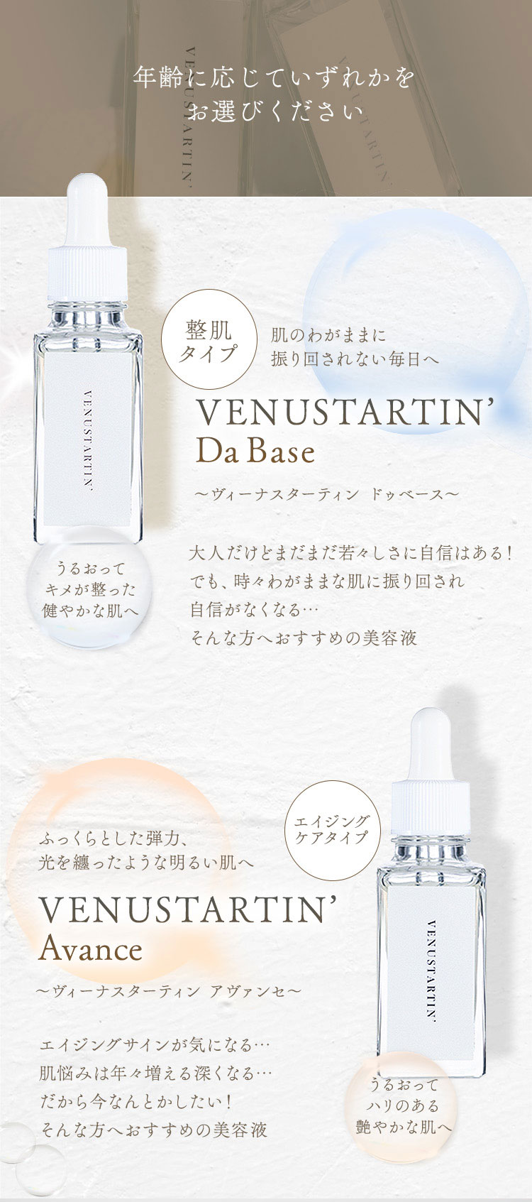 大人の深まる肌悩みにアプローチ。肌再生美容液VENUSTARTIN(ヴィーナスターティン)